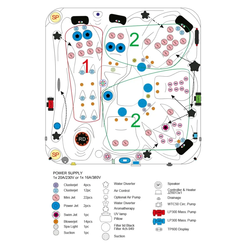 Виготовлений з вінілестеру і поліестеру за технологією Aristech® Acrylic, має тришарову ізоляцію, захисне покриття Everlast™ та систему очищення води. Технологія Hybrid Heating™ збільшує тепло та знижує енергоспоживання. Має програмоване увімкнення та вимкнення.