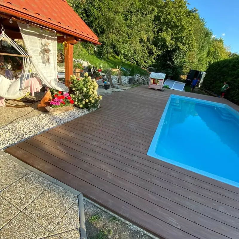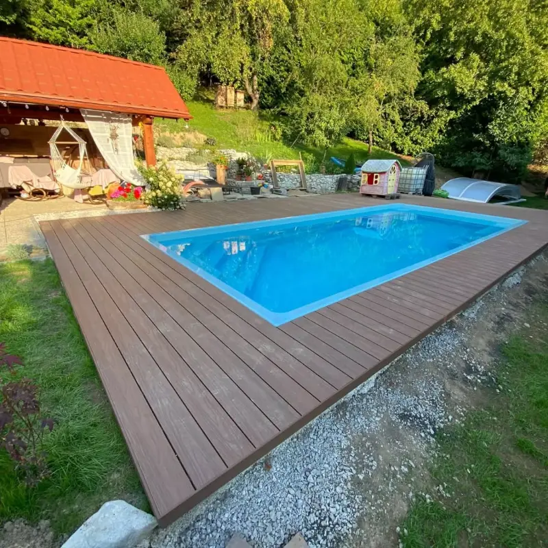 - Удобство обслуживания — легче убирать зону вокруг бассейна;