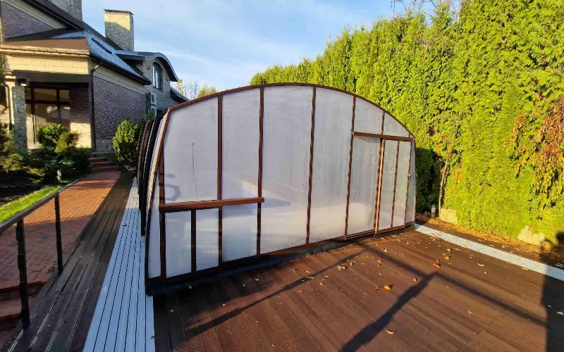 Безрельсовые павильоны – это удобный и безопасный вариант для частных бассейнов, особенно когда важна эстетика и комфорт.