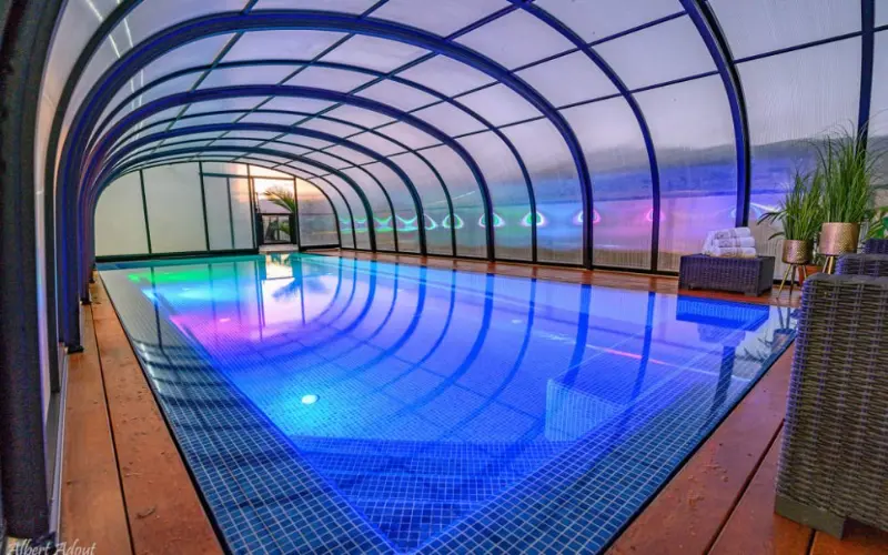 - Позволяет купаться в бассейне под открытым небом или под закрытым павильоном;