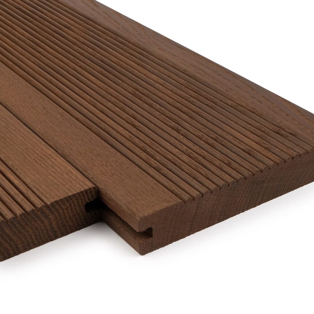 Если вы ищете идеальный материал для вашей террасы, то террасная доска Bauwood BT-4 из термоясеня – это то, что вам нужно. Эта доска сочетает в себе высокое качество, эстетичный вид и долговечность, обеспечивая вашей террасе непревзойденный вид и функциональность. Она устойчива к воздействию погодных условий, включая влажность, UV-излучение и износ, что делает ее идеальным выбором для внешнего использования.